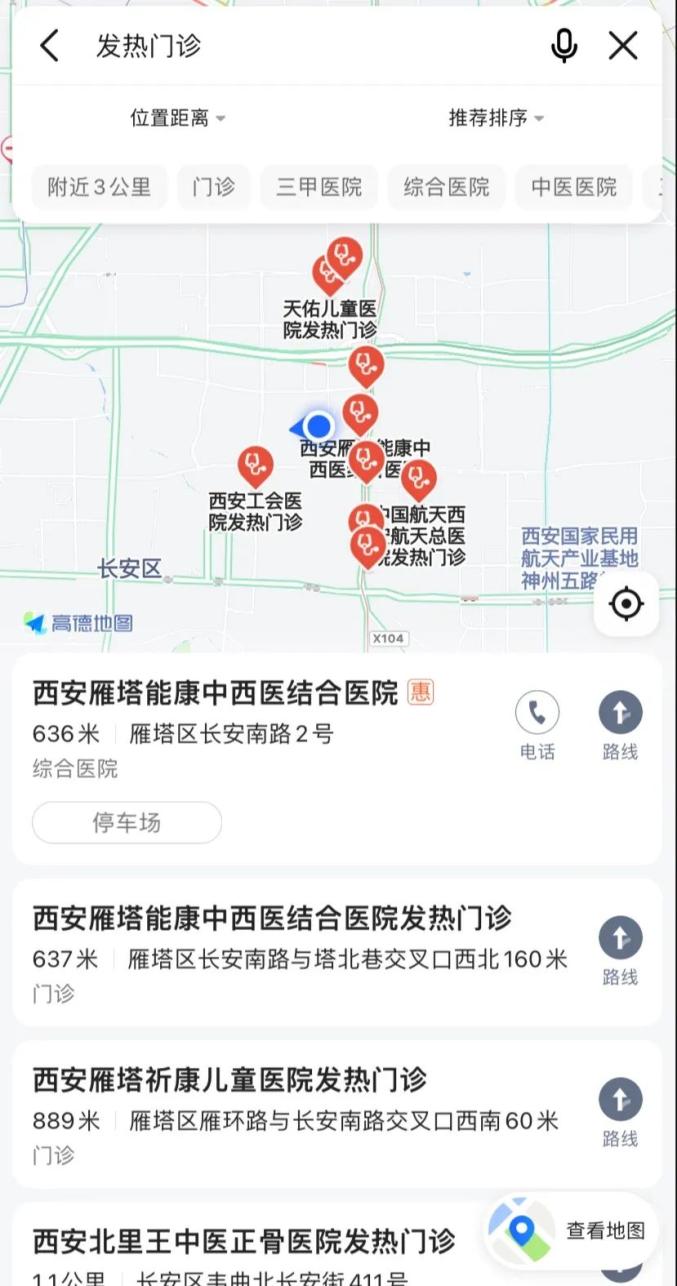 为做好新型冠状病毒感染的医疗救治工作,陕西596家二级及以上医疗机构均设置了发热门诊。为进一步方便群众看病就医,目前已有500余家二级及以上医疗机构的发热门诊地址和联系电话加入高德地图坐标,群众可通过高德地图查询附近发热门诊位置。