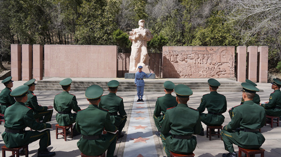 中队驻守在南泥湾,始终保持着一个优良传统:新兵下队后第一课到驻地红色遗址参观见学,接受革命红色教育。今年恰逢建党100周年,中队党总部把课堂搬到了南泥湾大生产展览馆。