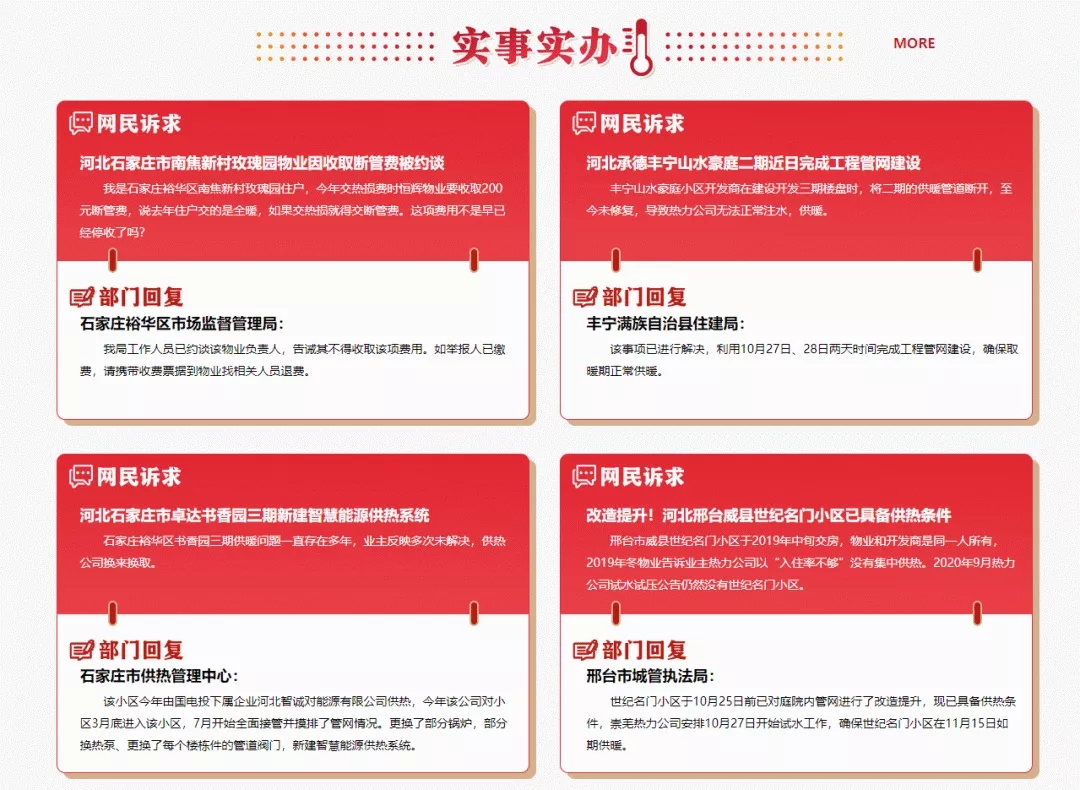 2020年供暖季来啦,河北新闻网《阳光理政》平台聚焦全省供暖情况,开设“2020阳光问暖”专题,联合平台四百余家供热主管部门及各地热企,积极受理各地供暖难题,为您“嘘寒问暖”,帮您温暖过冬。