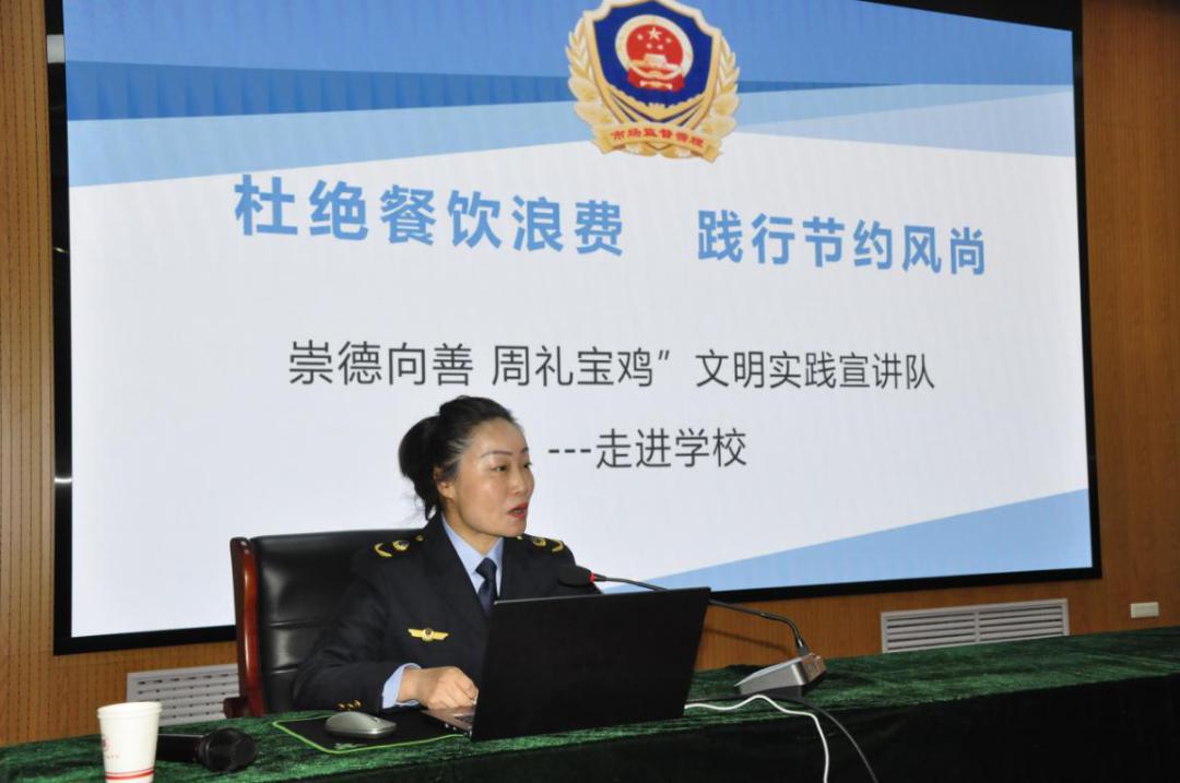 为弘扬中华民族勤俭节约的优良传统,引导广大市民提高文明意识,践行文明餐桌理念,杜绝“舌尖上的浪费”。近日,宝鸡市市场监督管理局组织四名宣讲队员深入11个县区开展了“崇德向善 周礼宝鸡”文明餐桌主题宣讲活动,本次宣讲已举办了23场次,是“文明餐桌”进机关、进学校、进社区、进企业、进农村活动的实践和深化。