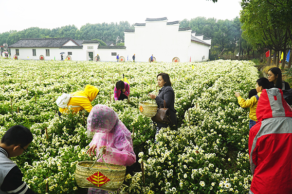 缘缘菊海位于桐乡市石门镇白马塘村,是“绿色、生态、高效”杭白菊标准化生产示范基地,是目前桐乡市杭白菊规模化种植面积最大、持续时间最久、基础设施相对完整的现代农业示范性基地之一。周边树木成林、荫荫葱葱,没有污染源,土壤、水源、空气符合国家各级检验机构检测要求。