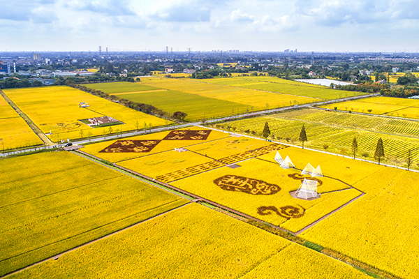 运河现代农业园区规划总面积 25.7平方公里,其中耕地面积25750亩,基本形成了新联村美丽乡村示范区和“东港十里三千亩”的产业带。秋季,千亩水稻翻浪金黄,让人心旷神怡,俯身触摸沉甸甸的稻穗,尽情感受着秋天的美景和收获的喜悦。园区核心区东港线全长5.5公里,沿线产业规划布局特色鲜明,形成了千亩水产、千亩葡萄、千亩稻田的“三个千亩”连片高质量主导产业示范基地。秋季,在“稻田秀场”,千亩连片金黄的稻海、稻田栈道、迷宫等是孩子们游乐的天堂。