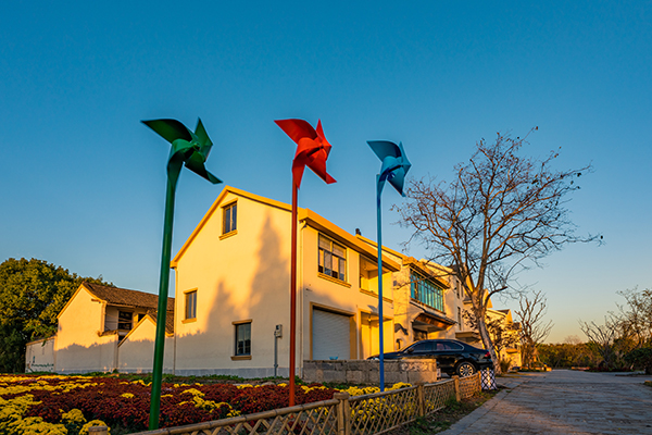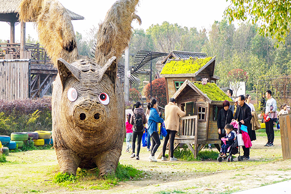 “子恺漫画村”以子恺文化IP为文脉,以乡村文创艺术为底色,打造以漫画创作研学为主题的活力乡村。村内配套子恺画校、子恺漫居、子恺染坊、子恺餐厅等业态。游客可身临子恺画境、品尝子恺家宴、体验传统民俗、重温乡土风情。村内建有多个颇具规模的现代农场,集休闲、餐饮、甜柿采摘于一体,以乡村休闲为特色的沈家墩庭院,以自驾采摘为特色的蓝莓园、黄桃基地、葡萄园等。