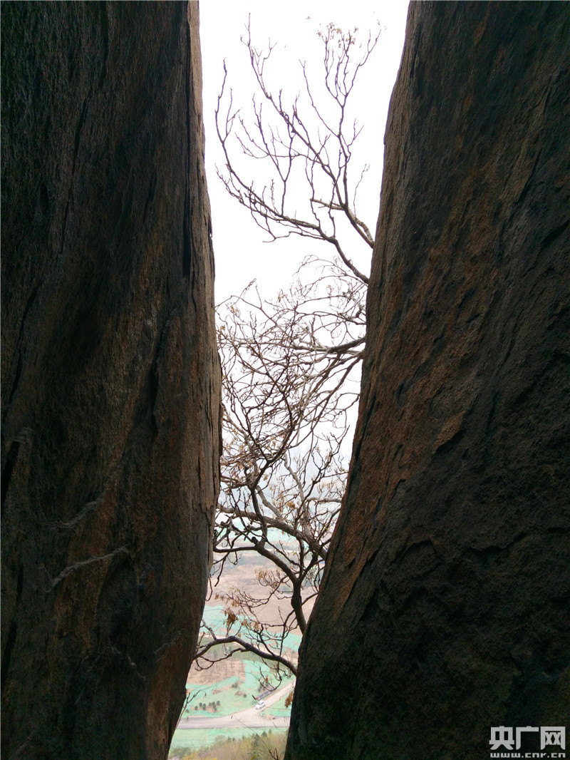 站在石缝中看外面感受很不同。(央广网记者 林彦银 摄)