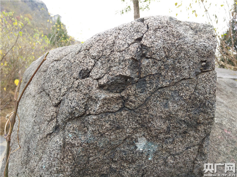 山顶也是乱石堆积,呈崩裂状。(央广网记者 林彦银 摄)