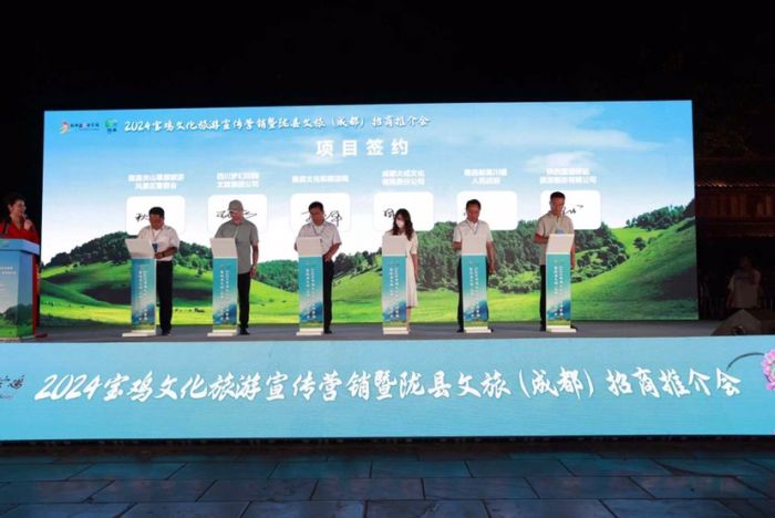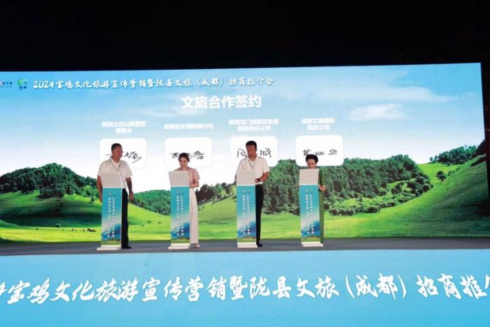 会上,陕西宝鸡市陇县文旅局、太白县文旅局、凤县文旅局、关山草原景区、龙门洞森林公园、太白山旅游景区与川渝地区重点旅行社签订了一揽子合作协议;关山管委会、陇县文旅局、陇县新集川镇、陇县招商局、陇县园区管委会分别与成都多家企业签订了招商协议。