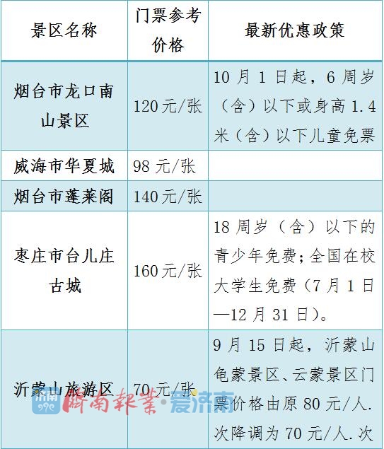温馨提示:10月1日起,景区旺季(5月1日至10月31日)最高票价由138元/人次降至130元/人次。其中刘公岛景区景点门票由107元/人次降至99元/人次,船票价格保持31元/人次不变;淡季(11月1日至次年4月30日)景区将根据实际情况实行优惠票价,优惠方案报市物价局备案后执行,并提前两个月向社会公布。