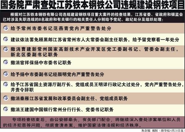 2004年4月,国务院派出专项检查组对该项目进行全面检查,调查结果定性为该公司未批先建800万吨钢铁项目,涉嫌违法占地6000多亩。