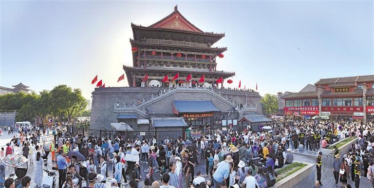 4月30日,西安鼓楼游人如织。 记者 戴吉坤摄