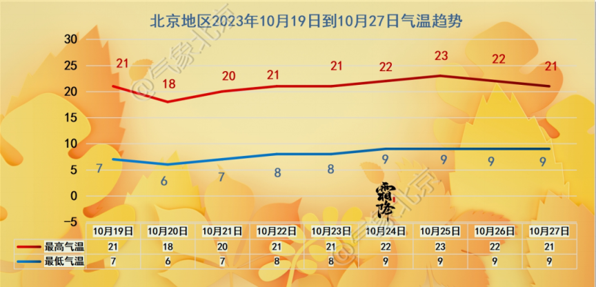 而双休日白天气温略有回升,最高气温在20~21℃,夜间气温却很难回归两位数了。