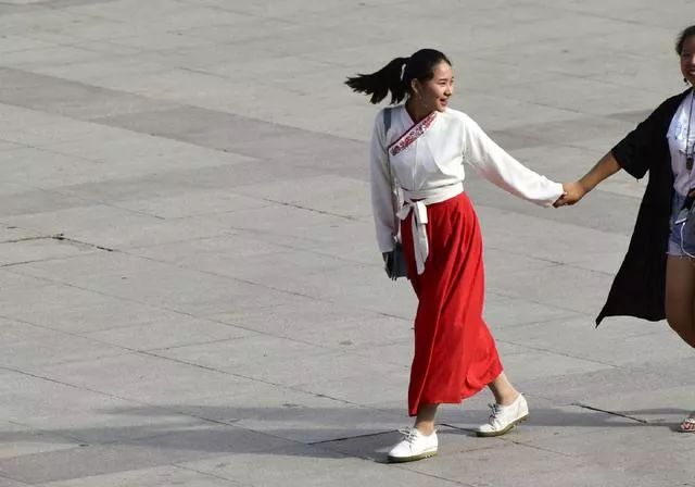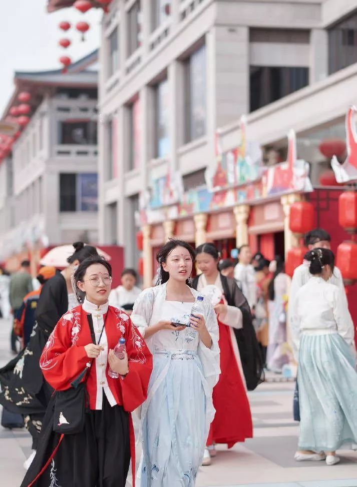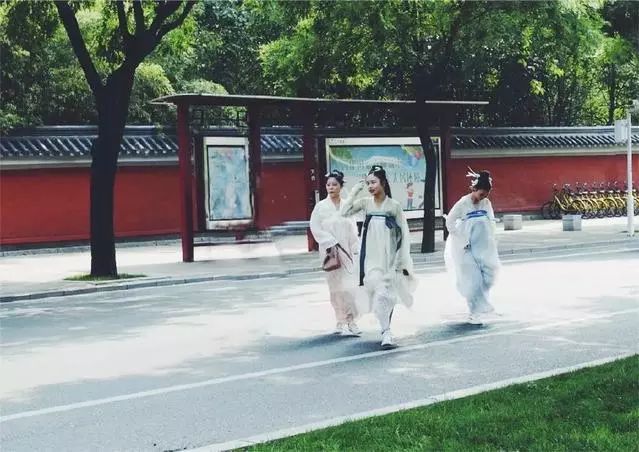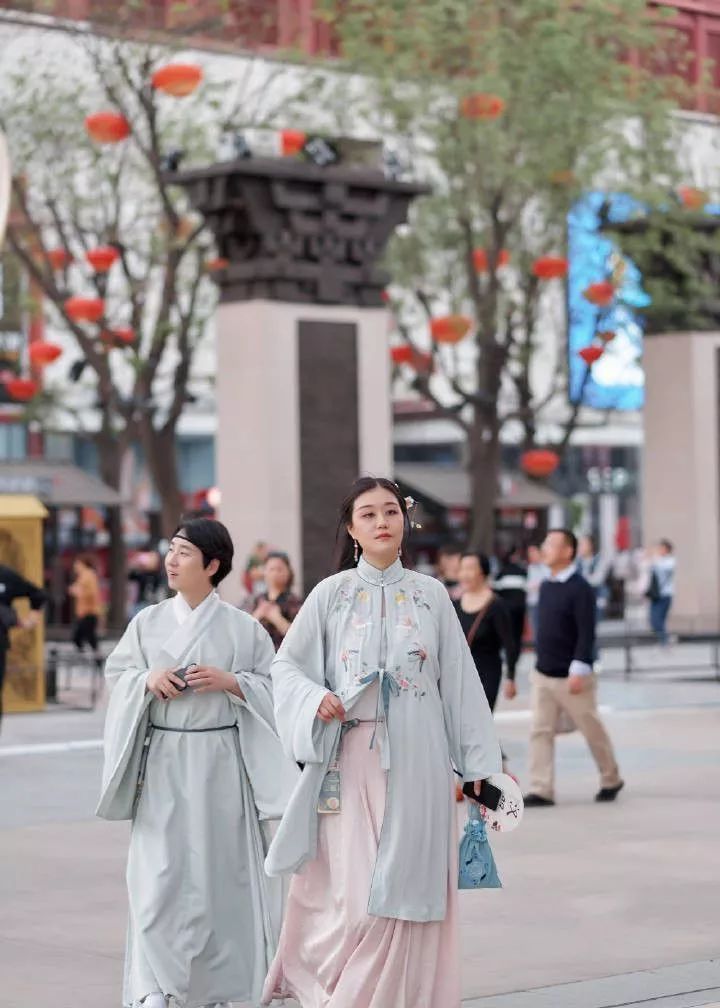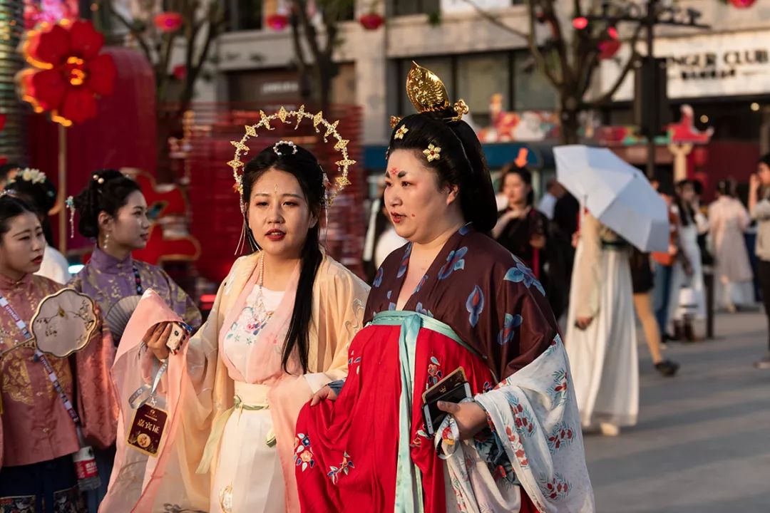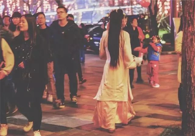 华服爱好者们衣袂飘摇的穿街过巷