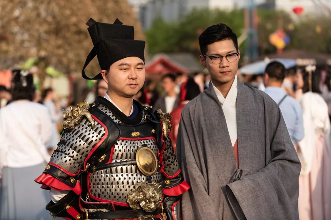 “华服日”当天,除了爱美的女孩会身着美丽服饰以外,不少男生也选择不同风格的古装前来参加活动。
