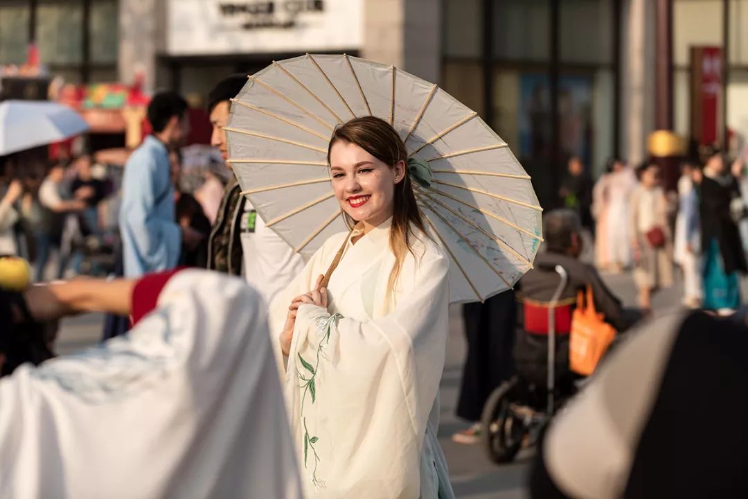 一位来自西安交通大学的乌克兰留学生也特意去参加“华服日”秀典活动,独具异域风情的外貌吸引了许多“同袍”的关注。