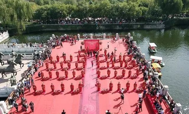 曾在汉城湖景区封禅广场坝前平台举办的汉式集体婚礼热闹非凡,30对新人共同行礼,步入婚姻殿堂。