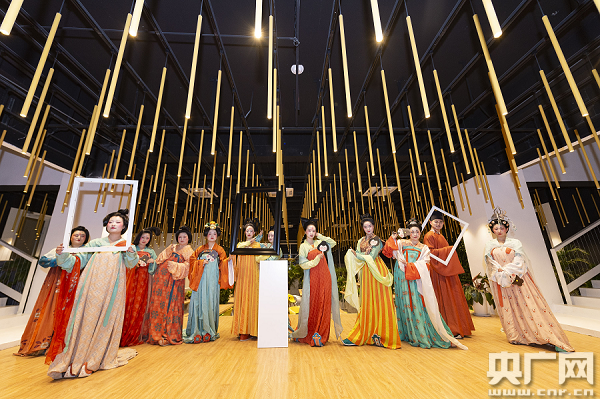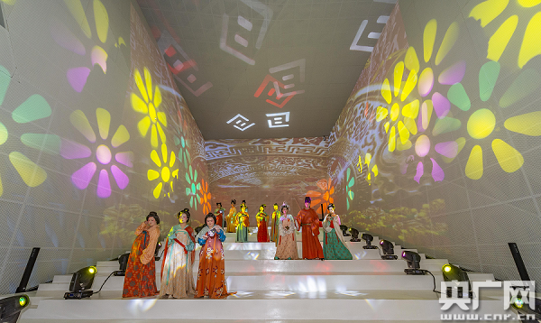 此次动态走秀活动中,《国家宝藏》第二季里出镜的根据新疆维吾尔自治区博物馆的“唐代芭比”三尊绢衣彩绘木俑、敦煌莫高窟的“大唐C位名媛”都督夫人及西安博物院的“唐代网红胖美人”三尊女陶俑进行艺术再现的服饰悉数到场,再次演绎,让现场观众体验了具有“唐味”的中国年。