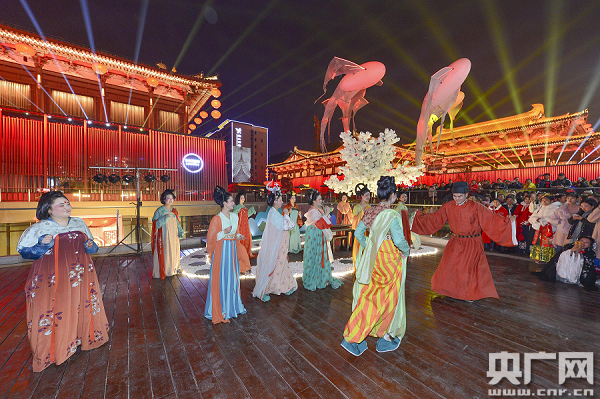 “古代服饰艺术再现”唐服秀亮相大唐不夜城·现代唐人街