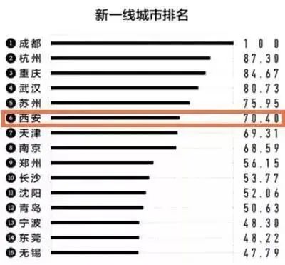 西安首次进入新一线城市头部梯队,排名第五。
