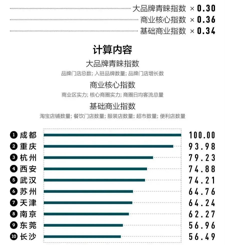 商业资源集聚度是一项借助商业世界的选址研判智慧,评估城市商业实力强弱的数据指标。它从主流消费品牌对城市的青睐程度、商圈实力以及基础商业发展三方面衡量城市的商业繁荣程度。