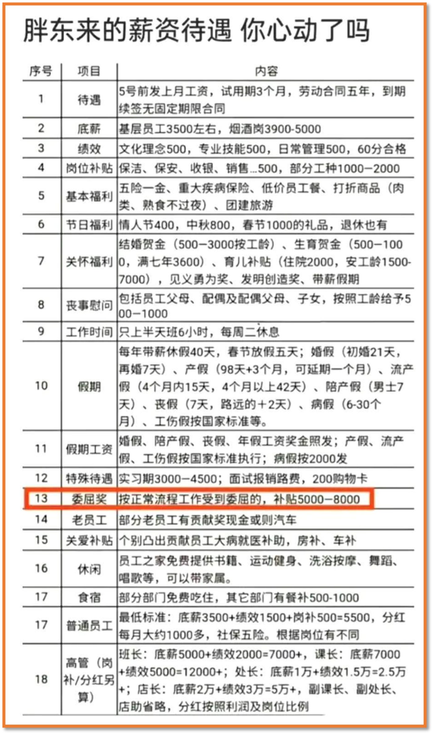 更难得的是,它们还活成了打工人的梦想职场。这当中最有名的是胖东来,因给员工颁发“委屈奖”而频上热搜。员工在这里打工有三多,工资多、假期多、奔头多。