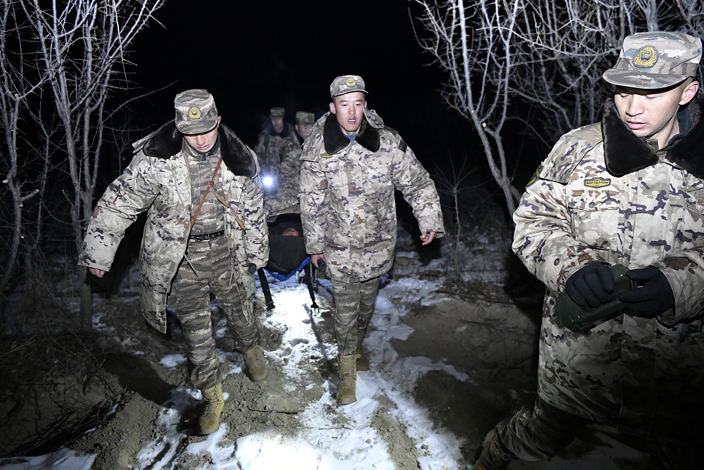 2023年12月19日,甘肃省临夏州,积石山县,武警甘肃总队临夏支队官兵到达刘集乡阳屲村迅速展开救援 图源:视觉中国