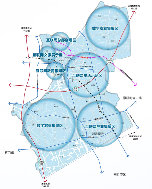 为建设乌镇“国际互联网小镇”,110.93平方公里的乌镇土地上要打造互联网总部会展区、互联网产业集聚区、互联网文旅展示区等6个区。从而把乌镇“国际互联网小镇”打造成为全球顶尖的交流会展地、世界一流的产业集聚地、赋能未来的创新策源地和示范引领的幸福生活地。六区联动的乌镇“国际互联网小镇”,未来值得期待。