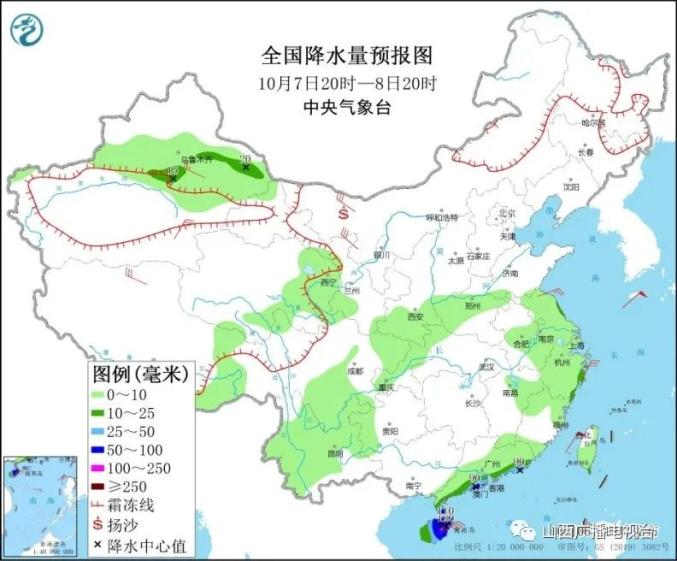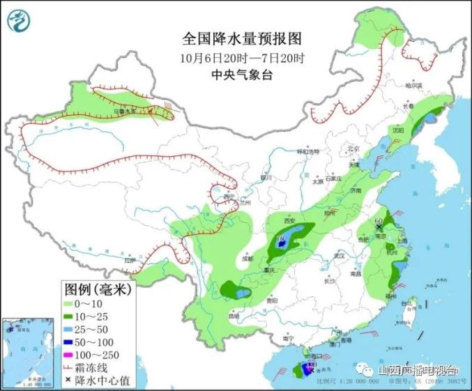 图1 全国降水量预报图(10月6日20时-7日20时)