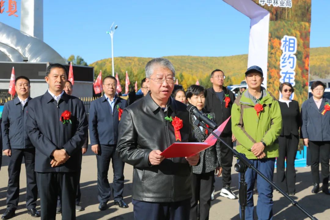关敬军在致辞中说,举办本次系列活动,是呼中区委、区政府、林业局迅速贯彻落实习近平总书记考察黑龙江省重要讲话重要指示精神,坚定践行“两山”理念,推动文旅产业融合发展的重要举措。近年来,地企双方坚持同心同向,以规划共谋、景区共建、服务共推的使命担当,全面叫响“最冷小镇”“最冷林场”旅游品牌。希望通过开展本次活动,进一步宣传推介呼中,让更多的游客来小镇找北、找冷、找美,不断把资源优势转化为产业优势,把生态优势转化为经济优势,把区位优势转化为发展优势,共同把呼中打造成“绿水青山就是金山银山,冰天雪地也是金山银山”忠实实践地,确保习近平总书记重要讲话重要指示落地生根、造福人民。