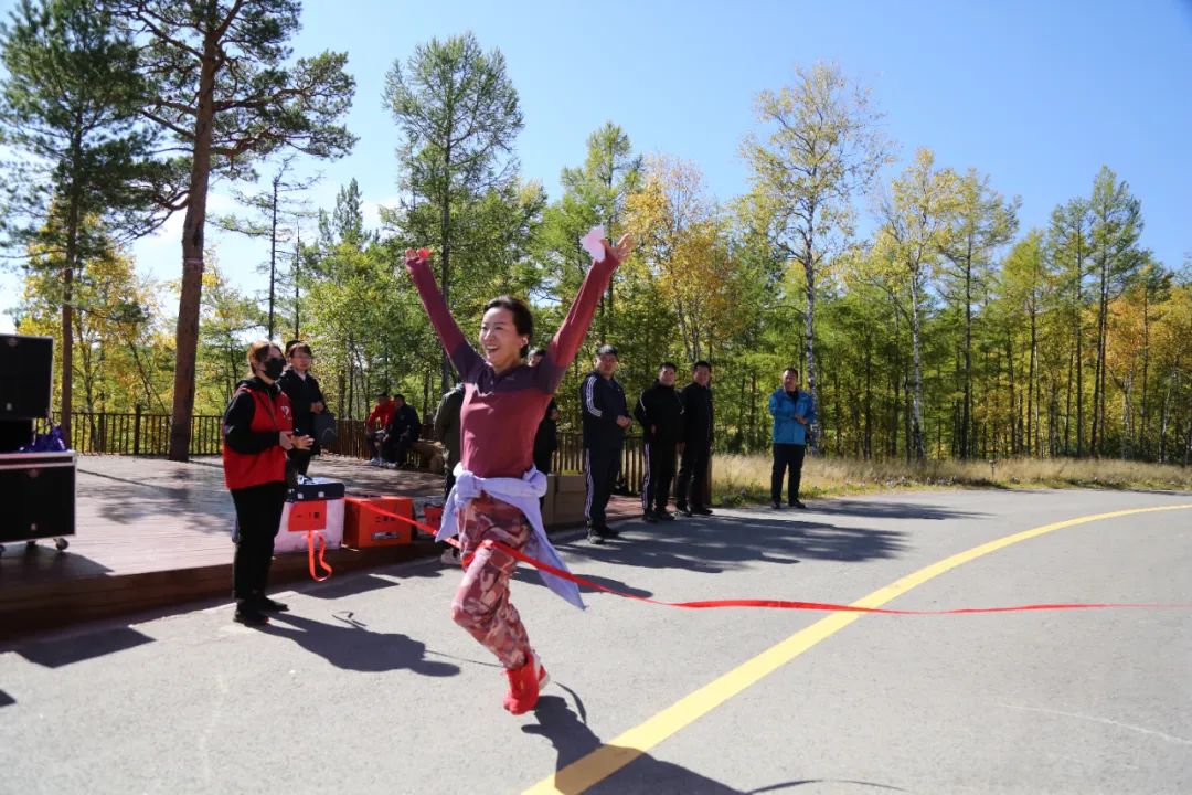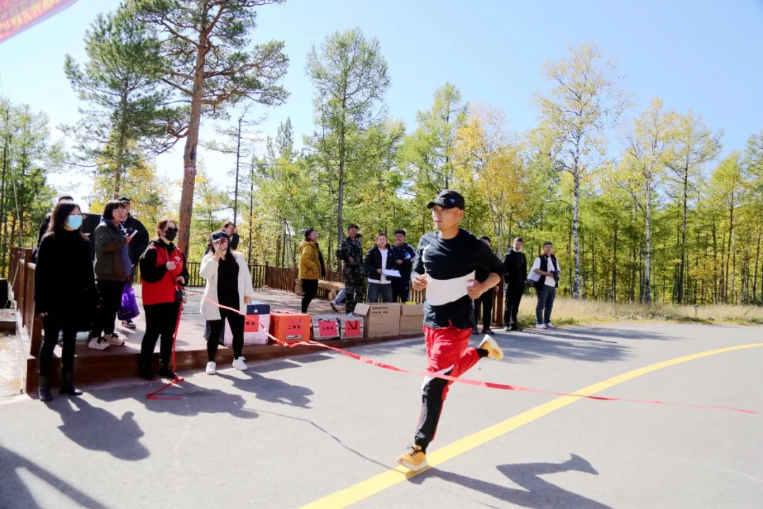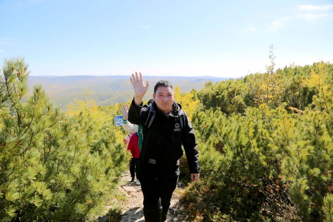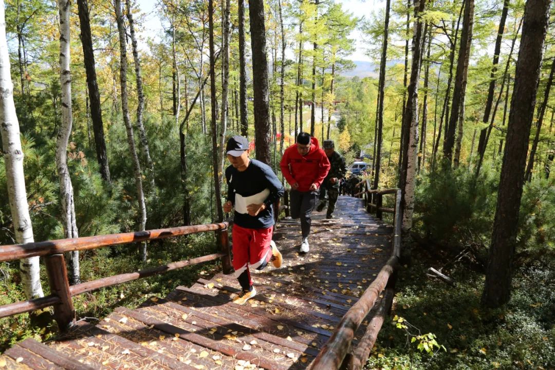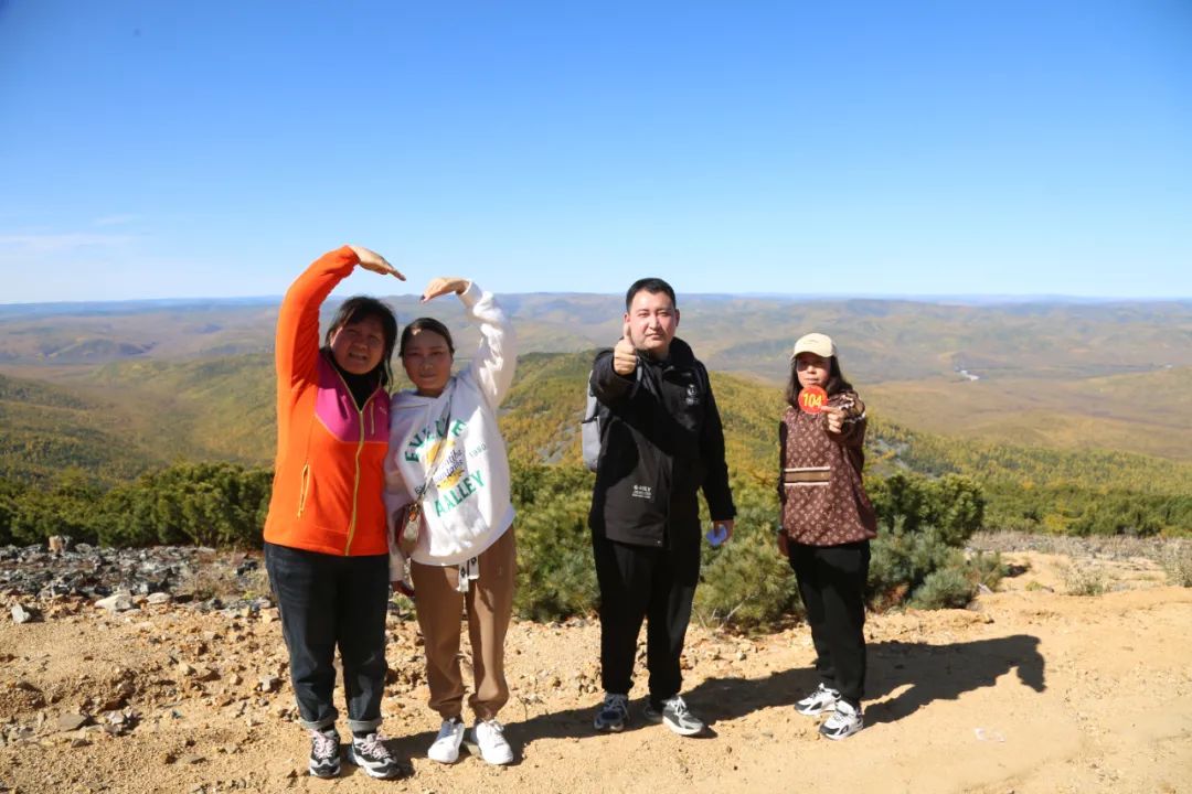 海拔1404米的白山主峰是比赛打卡地,不多时这里热闹非凡,有率先领取号牌争名次的、有驻足拍摄最美五花山色的,有与兴安第一塔合影留念的……