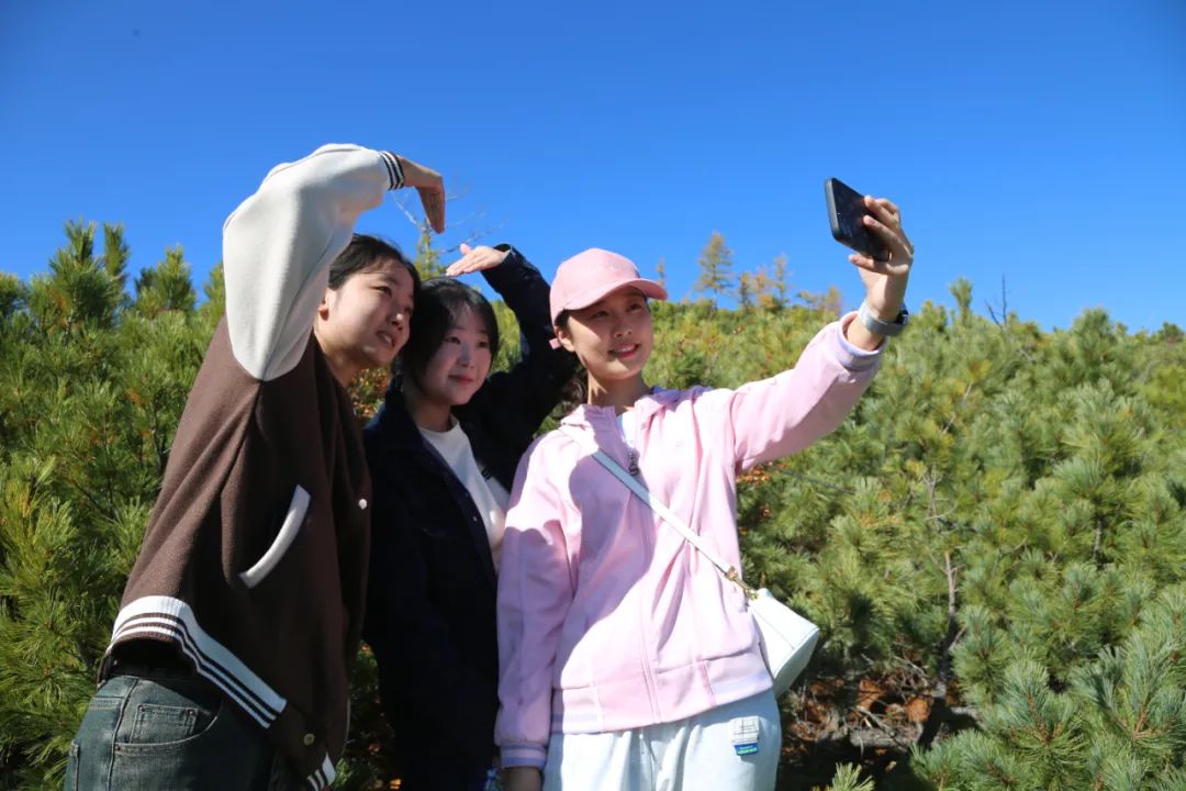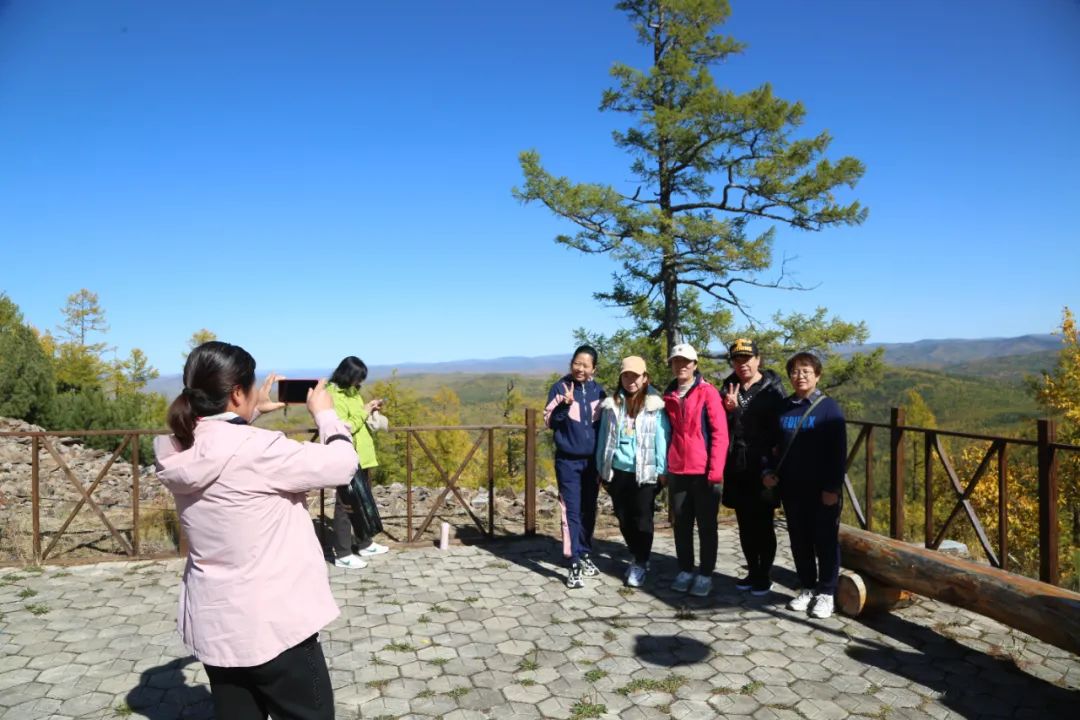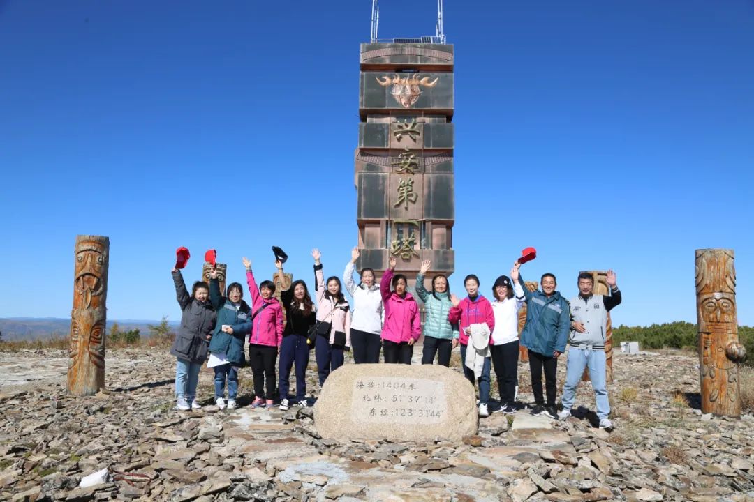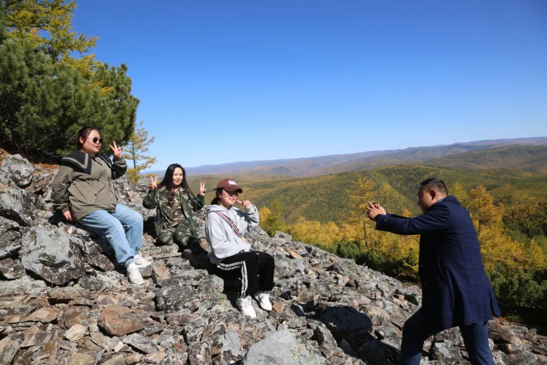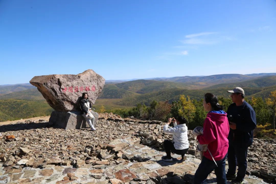 海拔1404米的白山主峰是比赛打卡地,不多时这里热闹非凡,有率先领取号牌争名次的、有驻足拍摄最美五花山色的,有与兴安第一塔合影留念的……