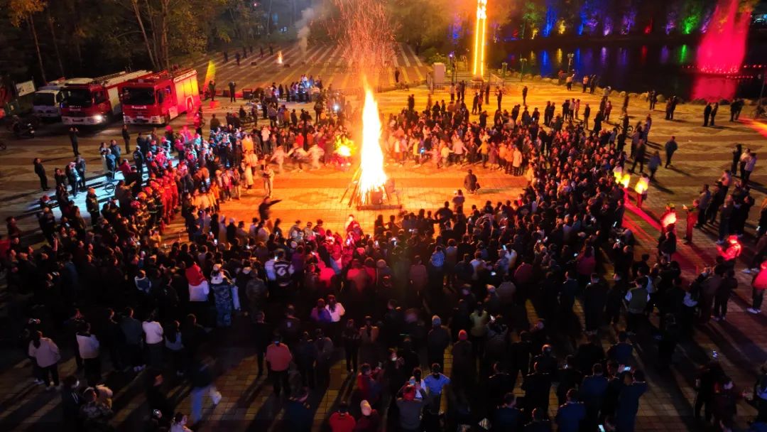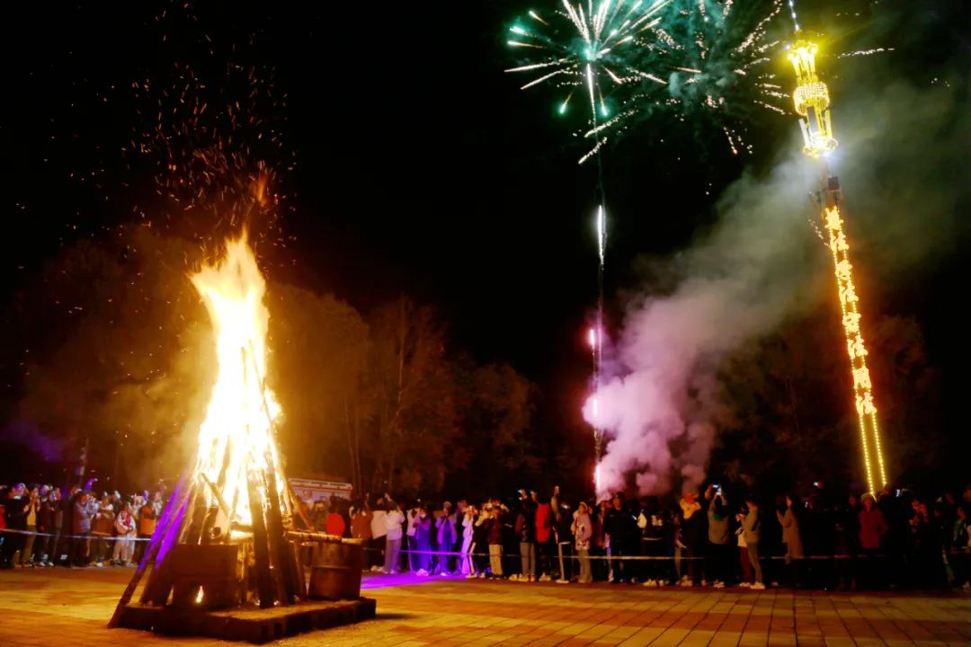 篝火文艺晚会把五花山森林穿越节预热推向了沸点,舞蹈《开门红》、器乐演奏《中国鼓》、歌曲《一路生花》等节目,歌颂了秀美呼中和勤劳的呼中人,演出结束,伴随着篝火燃起,绚丽的烟花升起,以天空作幕,时而像金菊怒放,时而像彩蝶飞舞,时而像火树烂漫……,烘托出浓郁的节日氛围,游客们将篝火围成几层,手拉着手,翩翩起舞,整个秀中园内成为一片欢乐的海洋。