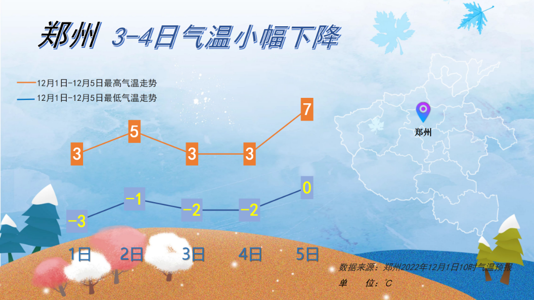 今天下午到夜里,晴天间多云,偏南风2到3级。最高温度:3到4度;最低温度:零下4度到零下3度。