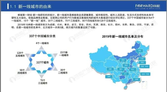 新一线城市是根据商业资源集聚度、城市枢纽性、城市人活跃度、生活方式多样性和未来可塑性五大指标,依据品牌商业数据、互联网公司的用户行为数据及数据结构的城市大数据进行综合评比得出。337个中国城市被分为4个一线城市、15个“新一线”城市、30个二线城市、70个三线城市、90个四线城市和128个五线城市。