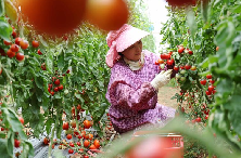 7月8日,在山东省临沂市沂南县依汶镇南栗沟村,村民在大棚里采摘西红柿。近年来,地处沂蒙山区腹地的山东省临沂市沂南县在推动农业产业化发展过程中,积极引导农民采取“合作社+基地+农户”的模式,规模化发展设施蔬菜产业,促进农民增收,为乡村振兴注入新活力。