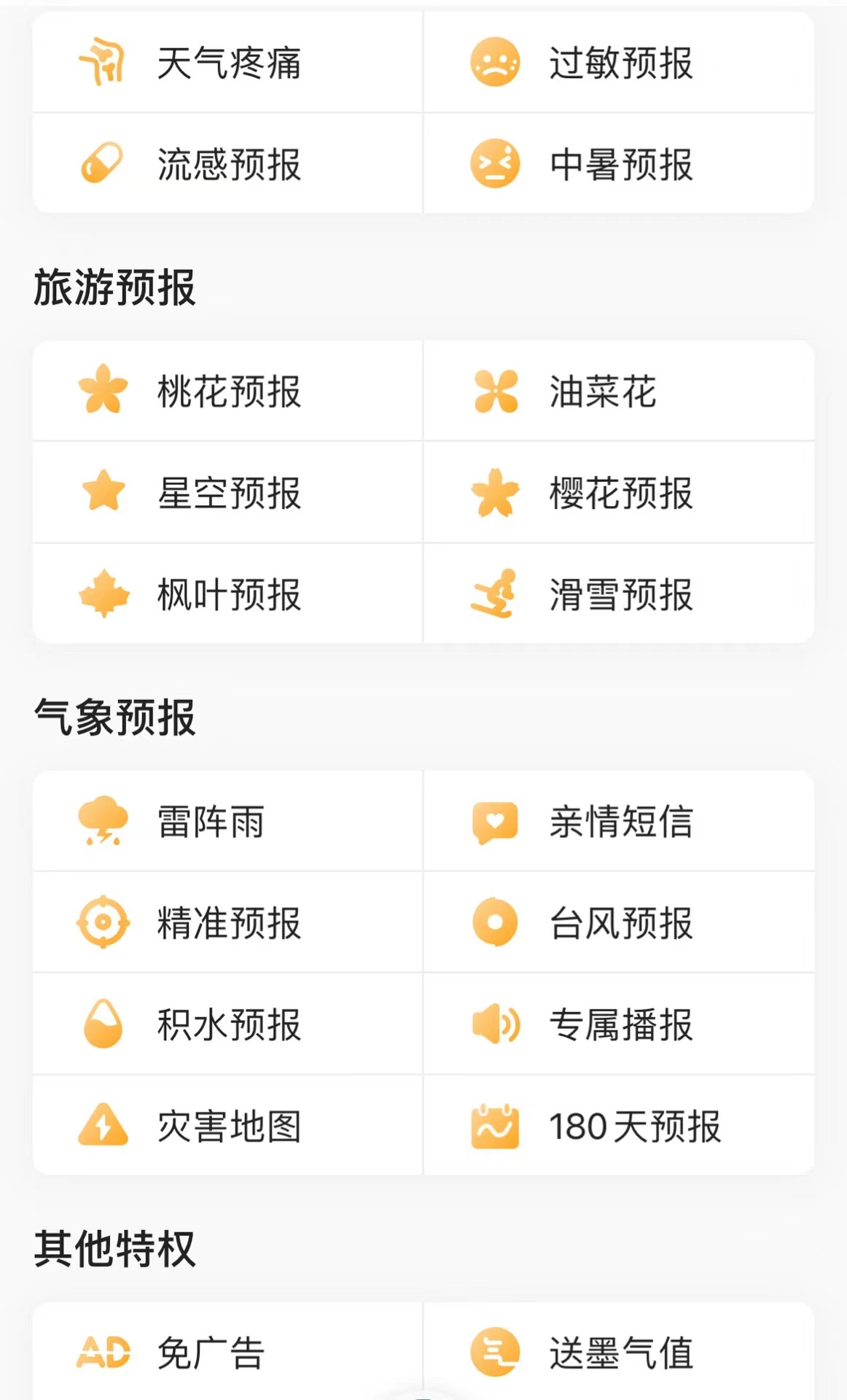 除了提供24小时及7天内的天气疼痛等级外,墨迹天气还深度探索“气象+”场景化服务,打造了「过敏预报」「流感预报」「中暑预报」「雷阵雨预报」「台风预报」「积水预报」「花期预报」「滑雪预报」「星空预报」等会员专属权益,以及「洗车指数」「彩虹指数」「紫外线指数」「运动指数」等数十种生活指数服务,通过链接多元化应用场景,为用户提供更美好、更高品质的生活。