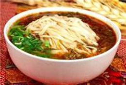汉中的浆水面,其味酸,辣,清香,别具一格。它看上去红白黄相间,入口酸辣清香,回味无穷,并具有开胃之功效,是夏季常见小吃。夏天的浆水,还常常当作预防中暑的清凉饮料,直接饮用。