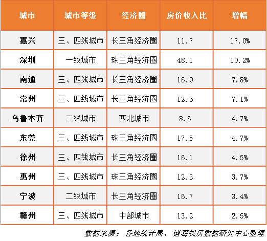 2020年房价收入比增幅TOP10城市 图源:诸葛找房数据研究中心