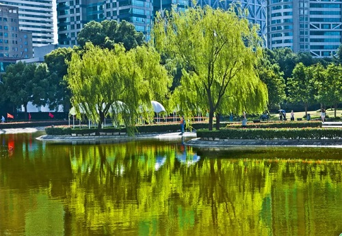 小陆家嘴风景区滨江区域,漫步、跑步、骑行三条慢行道随岸线蜿蜒,串联了沿江重点区域和重要节点。在陆家嘴中心绿地漫步于香樟林荫,垂柳、白玉兰、银杏、雪松、黄杨、红枫等植物映入眼帘,蜿蜒在绿地中的健行步道勾勒出上海市花白玉兰的图案,中心湖描绘出当时浦东新区的行政版图,状如白色海螺的湖畔景观棚则构成了绿地的室内休闲空间。