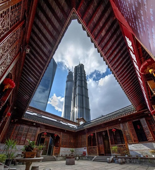 川沙古镇至今仍保留着方形城池、护城河环绕的完整格局,素有“堡城”之称。川沙曾是上海乃至全国著名的“营造之乡”,曾有“一把泥刀走天下”的美誉。川沙民居中有不少西方建筑元素与当地建筑融合的案例,陶桂松故居、以德堂、以道堂、丁家花园等,呈现了中西合璧的风格特色。