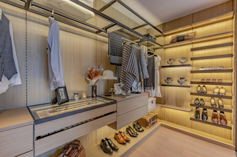 衣帽间则打破传统布局,开放式收纳打造独立展示区,合理规划收纳位置,衣物分类整齐有序,简约立面和经典色块打造舒适场域,利落线条延展空间。联动功能区解读设计语言,携纯粹之心对话生活,谈论着世俗和理想,也感受自己与世界的链接。
