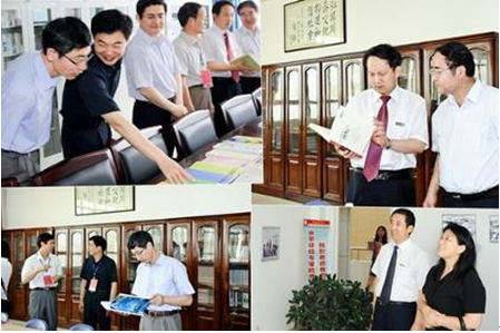 6月29日下午,王志刚、傅志军、赵荣侠和该院相关职能部门负责人陪同专家组成员实地考察了立项建设学科——中国语言文学、化学、地理学、哲学、数学资料室、成果展览、实验室和学科工作室,考察了该院图书馆自然科学和社会科学书库以及电子期刊数据库,并一同查看了授权学科和支撑学科建设的两个省级哲学社会科学重点研究基地——周期伦理文化与现代道德价值研究中心、关陇方言与民俗研究中心和陕西文学研究所。