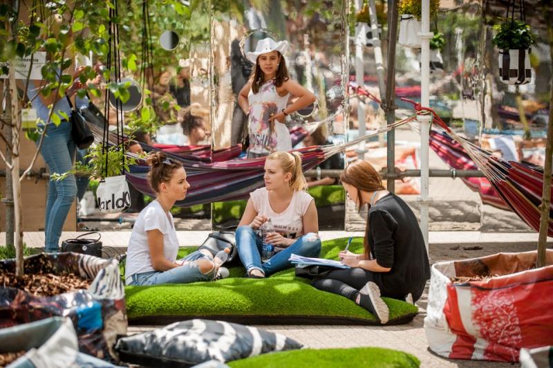 设计师利用或圆或方的桌子、长椅及防水软枕等各式各样的城市家具,将占地3000平方米的开阔空间切分为儿童游玩区、临时咖啡厅与餐厅、音乐剧院舞台与小工坊等不同的功能区域,将广场成功转变为面向所有人开放的舒适空间,成为宜人城市空间的典范。