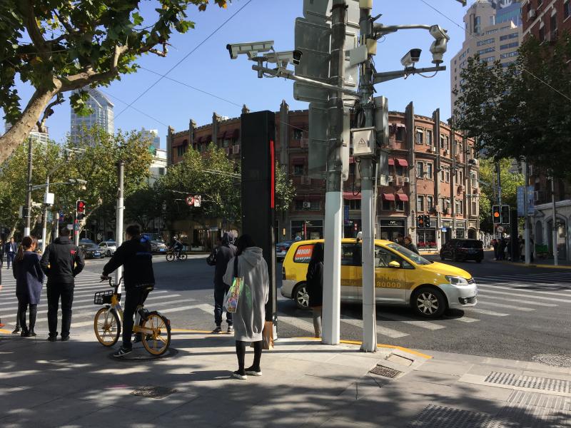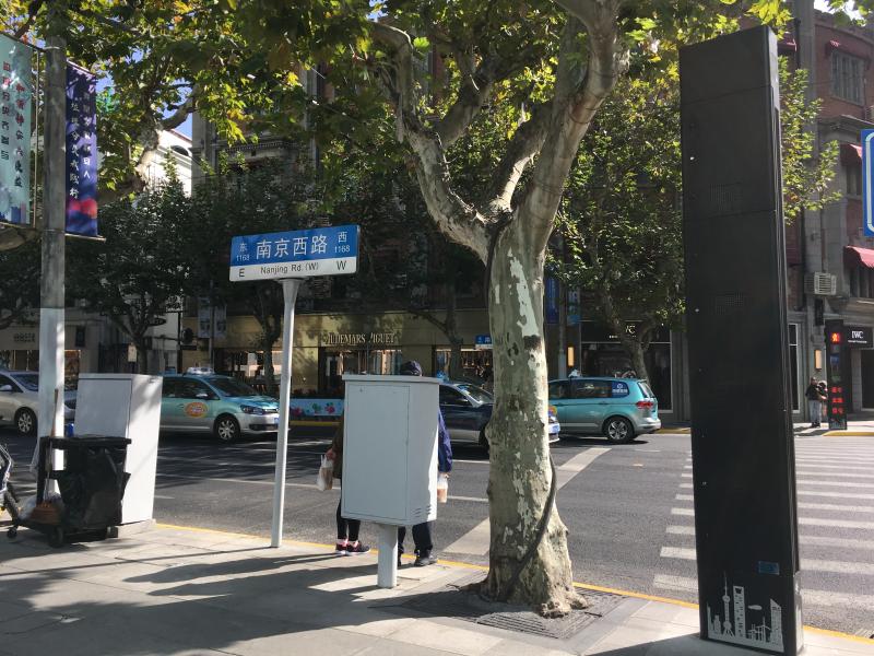 同样的问题也出现在城市中的一些十字路口。一般来说,道路交叉口为城市家具设置的控制区域,除红绿灯等必要设施之外,不宜放置过多设施,以保证驾驶员和行人的视线及通行畅通,避免交通隐患。而在南京西路/陕西北路路口一角,记者看到交通灯、路灯、路牌、指示牌、市政箱体……各种大大小小的设施多达9个,在人流如此大的十字路口,这些各自为政的城市家具林立街头,带来诸多不便和安全隐患。(见下图)有市民期盼,正在进行的架空线入地及合杆整治工程能够为此带来改变。