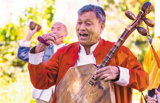 国家级非物质文化遗产华阴老腔传承人张喜民全情投入地表演。