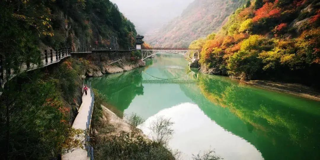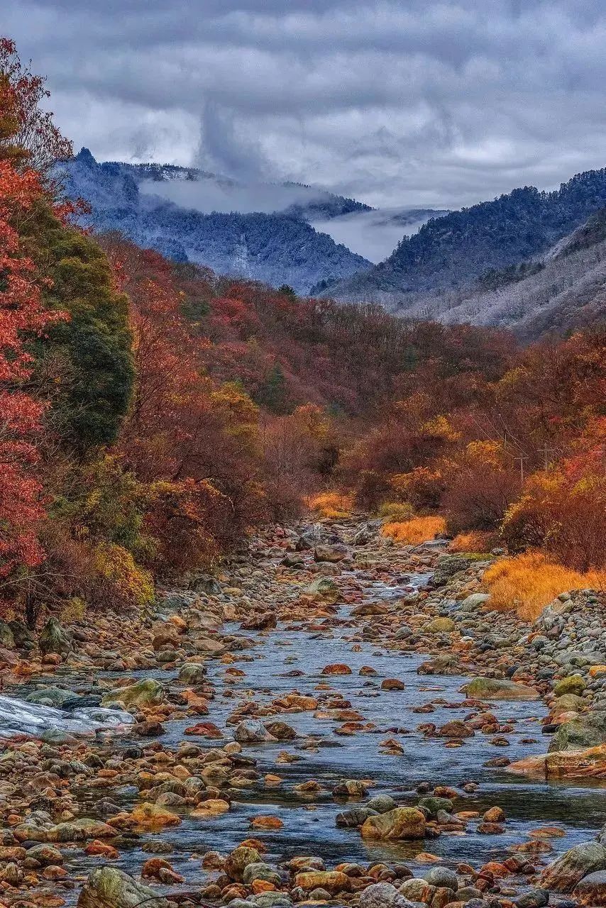 一路自驾秋景相伴,森林茂盛,峡谷中流水潺潺,碧水南流,流向汉江。如果远眺太白山脉,还可见山顶阴处的白雪皑皑。
