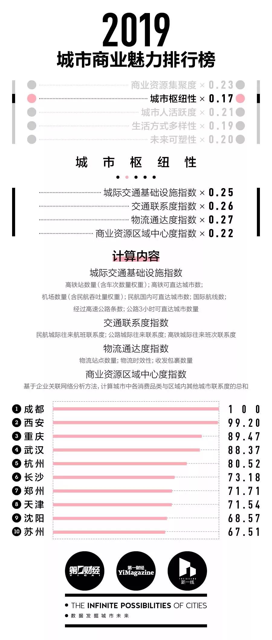 《城市商业魅力排行榜》是第一财经·新一线城市研究所制作的,与往年一样,今年收集了170个主流消费品牌的商业门店数据、18家各领域头部互联网公司的用户行为数据和数据机构的城市大数据,按照商业资源集聚度、城市枢纽性、城市人活跃度、生活方式多样性和未来可塑性五大维度指数来评估337个中国地级及以上城市。
