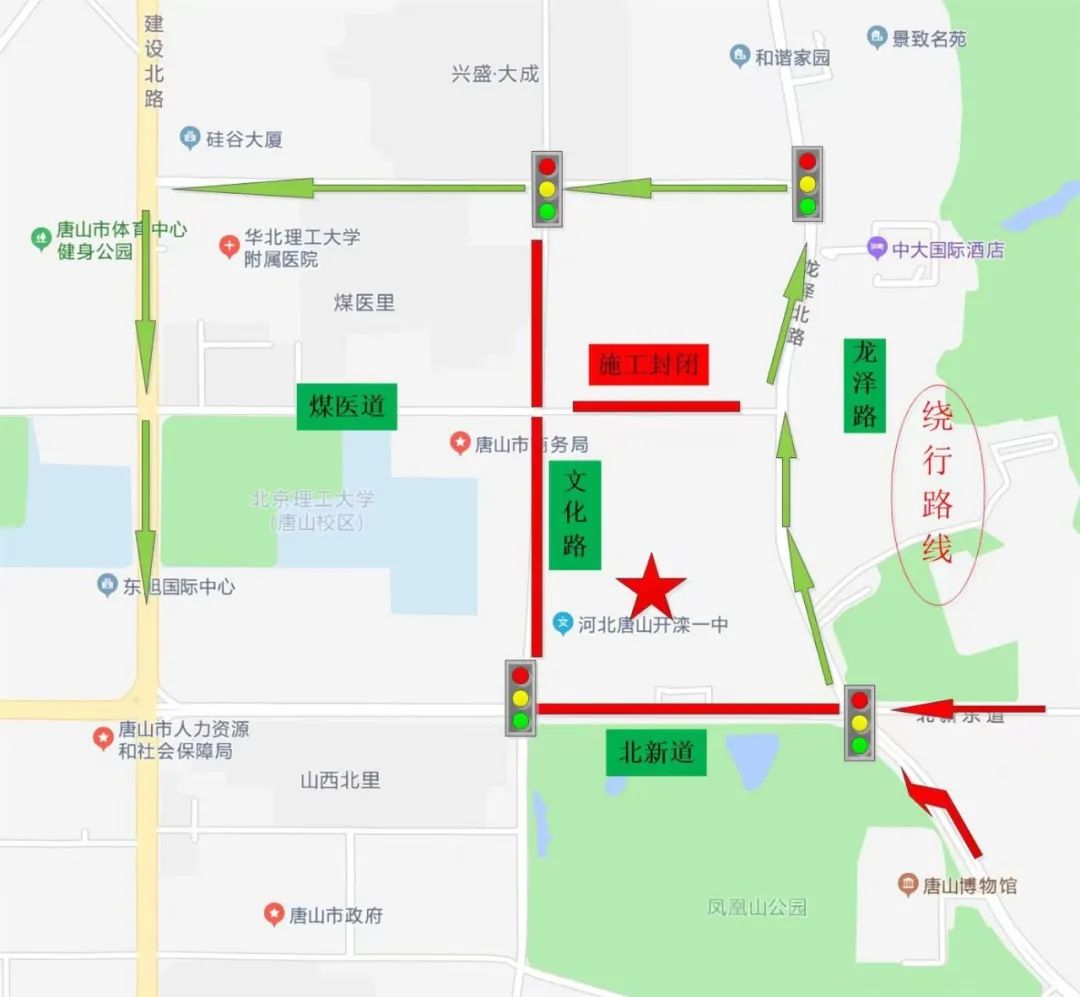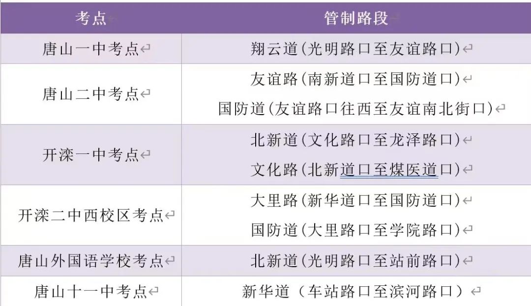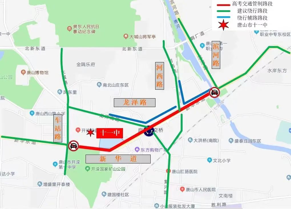 唐山市主城区考点交通管制路段: