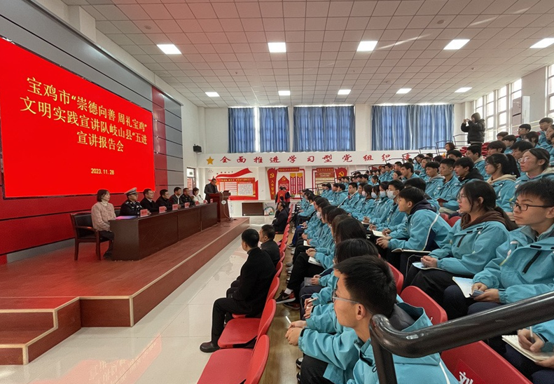 11月28日,宝鸡市“崇德向善 周礼宝鸡”文明实践宣讲队在岐山县和高新区开展“五进”宣讲活动。