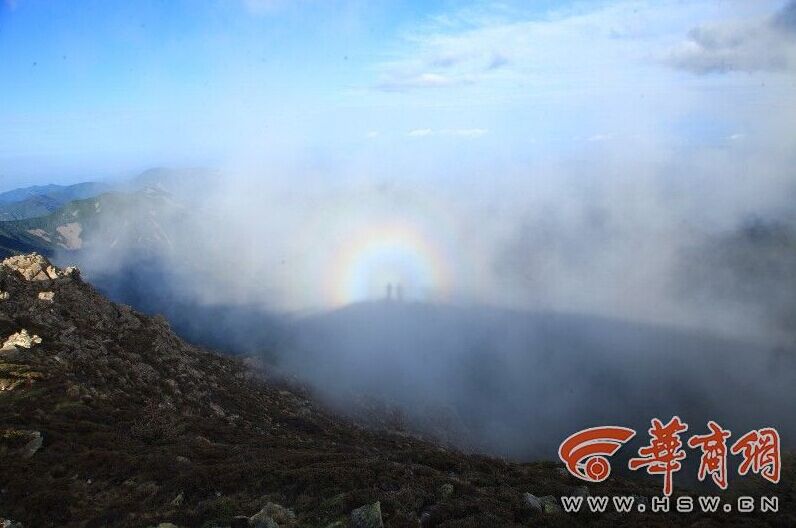 据了解,6日当天出现的“佛光”其实是一种非常特殊的物理现象,当阳光照在云雾表面,经过衍射和漫反射作用形成的自然奇观。阳光将人影投射到云彩上,云彩中细小冰晶与水滴形成独特的圆圈状彩虹。而佛光的出现要靠阳光、地形和云海等众多自然因素的结合,只有在极少数具备了以上条件的地方才可欣赏到。太白山恰好是一个得天独厚的场所,具备“佛光”出现的地理条件和气象条件,而“佛光”中的人影,由于是太阳光照射人体后在云层上的投影,因此,观看“佛光”的人举手、挥手时,人影也会跟着举手、挥手。华商记者张甜甜