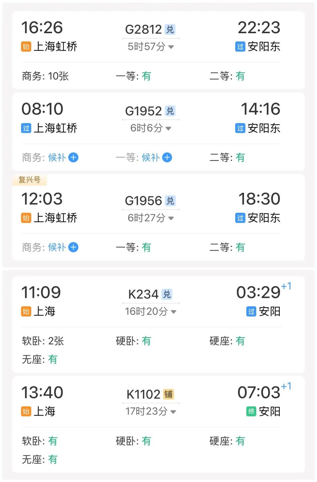 推荐车次