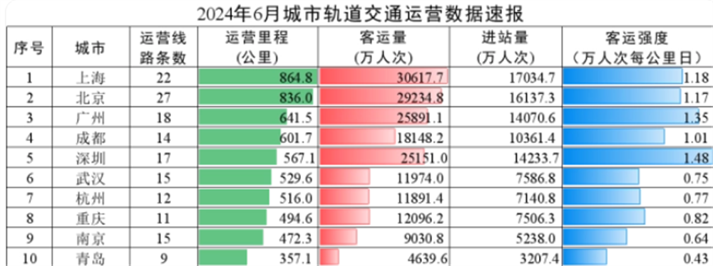 近日,中国交通运输部发布2024年6月城市轨交运营里程数据,成都,仍稳坐全国“第四城”的位置,与广州共居轨交600公里的赛道之中。